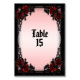 Belas rosas vermelhas profundas sobre a trama de ferro um número de mesa. Esta é parte de uma suíte de casamento chamada Rosa vermelha Gótica É fácil coordenar tudo para o seu casamento assim que você escolher o tema e o esquema de cores certos. Escolha uma design única para tornar seu dia especial perfeito. A Casa rico tem uma grande variedade de suites de casamento em uma variedade de temas e cores. Faça uma tripla verificação do seu texto antes da compra final