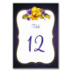 Rosas amarelas e violetas roxas com cartões de número de mesa emoldurados dourados ornamentados. POR FAVOR, NOTE: Você deve comprar esses cartões um de cada vez. Insira o número da sua mesa e adicione ao carrinho. Em seguida, comece novamente com o próximo número. Se precisar de ajuda, por favor, envie um e-mail para shutterbug600@yahoo.com.