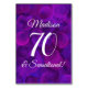 Elegante Purple 70 & Sensational Festa de aniversário Table Number Este é um cartão especial único de mesa de aniversário de arte roxa, especialmente projetado para seus amigos que estão fazendo 70 anos e são sensacionais! Personalize esta placa de mesa com seu nome. Planeje sua festa com mais festas de aniversário da nossa loja! Seu amigo ou família amará uma festa de aniversário elegante e roxa.