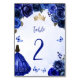 Numeração De Mesa Royal Blue Dourado Princesa Floral Quinceañera