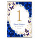 Royal blue gold Quinceanera celebration table number cards. Features, script font, gold butterflies, watercolor roses and tiara. Perfect for an elegant princess style glam celebration. Personalize with your own details. Printed Zazzle invitations or instant download digital printable template.