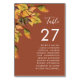Número da Tabela de Casamentos outono de Folhagem de outono Rustic Brown com Nomes de Convidado. Todos os textos estão pré-organizados para que você personalize fácil e rapidamente com seus próprios detalhes.