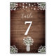 Este design de cartão de número da mesa de casamento apresenta um vaso de jarro de pedras cheio de flores de hálito de bebê em um fundo de madeira rústica acentuado com luzes de cordas. Clique no botão personalizar para obter mais flexibilidade na modificação do texto! No nosso compro, estão disponíveis variantes desta design, bem como produtos de coordenação, zazzle.com/store/doodlelulu. Entre em contato conosco se precisar deste design aplicado a um produto específico para criar seu próprio item de correspondência exclusivo! Muito obrigado por ver um DoodleLulu em 2 inseto de junho!