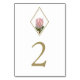 Esta design apresenta uma flor de proteína rústica rosa. A flor da proteína rei com suas folhas verdes é elegantemente emoldurada com uma estrutura de cor de diamante dourado. A flor da protea-rei e seu verde criam um arbusto floral rústico. Design da mesa de casamento russa com elementos modernos elegantes. Os convites de casamento e outros artigos de papelaria também estão disponíveis. Personalize o número e adquira cada número mesa individualmente de acordo com quantos números de tabela você precisa.