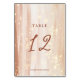 Este número da mesa de casamento apresenta um fundo elegante de aquarela marrom e dourada que corresponde ao roteiro de caligrafia rustica de cor do terracotta.