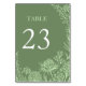 O Número da Tabela Floral de Casamento Desenhado à Mão Verde da Sage é invertido. Este elegante cartão de número de tabela apresenta um fundo verde sábio acentuado com delicados florais verdes de flor silvestre. Perfeito para um casamento de jardim, rústico ou clássico, o estilo geral é macio, arejado e convidativo.