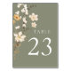 A placa de número da mesa de casamento de Sage Green Wildflower tem um estilo suave e elegante com um fundo verde mudo que parece calmante e eterno. As ilustrações florais brancas deliciosas ao longo do lado esquerdo adicionam um toque de charme brilhante e inspirado na natureza. O layout é limpo e organizado, no geral, a design se sente romântica, mas subestimada, perfeita para um casamento moderno, mas tradicional. Consulte Convite para casamento.