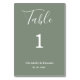 O passado moderno do sábio verde com roteiro branco com a palavra "mesa" escrita nele aparece em cartões de número da mesa de casamento. Um fundo esticado ou qualquer cor de sua escolha é usado no design. O padrão é repetido no verso. Inclua seu nome, data do casamento e número da tabela ao solicitar os cartões de mesa. Adicione individualmente cada número ao seu carrinho e, em seguida, vá para o check-out quando terminar.