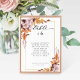 Câmbio elegante ou cartão de número da mesa floral de outono com nomes de convidados.