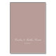 This folded wedding place card features a mauve background with elegant script typography for a timeless, formal table setting. Personalized with guest names and table numbers, it helps guide seating while adding a polished, coordinated look to your reception decor. The classic design pairs seamlessly with traditional and black-tie wedding stationery suites. Ideal for couples who want place cards that feel refined, organized, and thoughtfully designed.