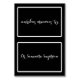 Cartões de lugar pretos e brancos, a dobrar após a compra. Preto com modelos de texto de script brancos que colocam o nome do convidado em ambos os lados, bordado em branco. Use para recepção de casamento, janto de ensaio ou festas de janto.
