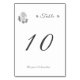 Design apresenta um fundo branco puro para um elegante título de cor prateada e número da tabela. O canto superior esquerdo mostra a imagem de Nossa Senhora da Fátima como oval e limitada por rosas delicados e verde. Nomes de noiva e noiva são apresentados no centro inferior. Inverte a imagem de dois rosas delicados no canto inferior direito. Todas as imagens estão em cor prateada. Ambos os lados são idênticos em design. Projetado para coordenar com a "Virgem Maria Católica Silver Wedding Suite."