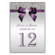 Cartões personalizados para qualquer evento - casamentos, chás de fraldas, festas de aniversário, doces 16, celebrações de Quinceanera, noivados, chás de panela etc. As cores elegantes e personalizadas prata e púrpura para cartões de números de tabela de dupla face com uma bela brilho impressa cintilante, rotinas, padrões de sequências, arcos vetoriais e fitas brilhantes e brilhantes e diamantes de imagem bonito e impressos em na moda que misturam joias e texto roxo. Essas cartas elegantes e elegantes são decoradas de ambos os lados. Bonitas, quentes, modernas cartas de lado duplo com brilho e glamour. Tenho produtos correspondentes na minha loja. O texto, a fonte e as cores da fonte são todos personalizáveis/personalizáveis para atender às suas necessidades. Se precisar de ajuda para personalizar seu produto, entre em contato comigo através da minha loja.