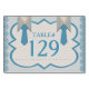 Cartoes de Número de Mesa da nossa Coleção de Casamento Gay original prestam homenagem à camisa listrada azul oxford sempre popular, molduras de 1890, formas de chamada + a ilusão 3D dos colarinhos, colarinhos de camisas e gravatas de 2 cavalheiros. Personalize o campo numeral - ou limpe-o e preencha à mão quando as mesas estiverem configuradas. #zazzlemade