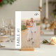 This stunning table number card features a beautiful photo and combines elegance with a modern touch, making it suitable for any season. The card displays a picture of the couple alongside a customizable monogram. To personalize this design, simply click on "Personalize This Design," upload your photo, enter your details, and Zazzle will take care of the rest.