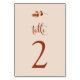 Este elegante número de mesa apresenta um belo galho de folhas terracotta de aquarela sobre fundo esticado. Esta é parte da Coleção Romance do outono. (O texto é terracotta.)