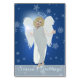 Um anjo visita uma cabana remota para entregar a luz do Natal num cenário de inverno completo com flocos de neve e Estrela de Natal. Uma saudação perfeita para os feriados!