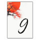 Apresentamos nosso Cartão de Número de Mesa de Casamento Red Sun e Old Sakura, um design romântico e minimalista com um toque oriental.