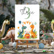Adicione um toque ousado à festa de aniversário do seu filho com o tema dinossauro com estes números de tabela personalizados "Stomp On Over"! Com designs vibrantes de dinossauros, esses números de mesas ajudam os hóspedes a encontrar facilmente seus assentos enquanto melhora a atmosfera festiva. Personalize-os com o nome e a idade do seu filho para um toque único que tornará o seu partido memorável. Perfeito por adicionar diversão e organização à sua comemoração de dino-mite!