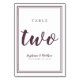 Este desenho personalizado foi criado para comemorações íntimas de casamento. A design da Tabela de Casamento Simples, Mínima e elegante Número Dois apresenta um design contemporâneo com uma borda de dois quadros em roxo sobre um fundo branco nítido. O design de chic oferece eterno, mas sofisticação moderna. Personalize a design de mesa de casamento com seus detalhes de casamento em letras roxas modernas e roteiro. A parte traseira da placa é uma duplicata da parte frontal. Encomenda um para cada mesa com os números de tabela individuais. O Mesa ONE to TEN foi projetado individualmente e está disponível na minha loja InvitationSuites no Zazzle. Embora tenha criado especificamente a um local menor, se precisar de números adicionais, envie-me um e-mail para InvitationSuites@gmail.com.