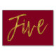 Numeração De Mesa Tabela Elegante Dourada e Borgonha Número Cinco