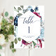 Numeração De Mesa Tabela Número Placa Berry, Blue e Borgondy Floral