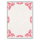 This Talavera Orange Floral Minimalist Spanish Wedding Table Number design features a minimalist approach with delicate, symmetrical orange floral motifs placed in each corner and along the edges. The small, leaf-like shapes create a sense of movement while maintaining an airy, open space in the center, allowing for ample text placement. The simplicity and elegance of the pattern evoke traditional Talavera tiles, giving the design a classic Mexican artisanal feel.