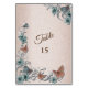 Numeração De Mesa Teal Silver Floral Copper Butterfly Tan Wedding