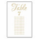 Texto dourado personalizado do script Elegante Número da Tabela de Casamento, Cartão de Gráfico de Sentado Convidado. Frase personalizável, texto, data, nomes.