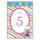 Um doce doce e doce cartão de mesa. Com listras e doces coloridos. Personalize facilmente a sua festa de aniversário, Bat Mitzvah e muito mais!