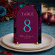 Tons de joias elegantes e sofisticados flores bordô número da mesa de casamento. Adicione um toque de sofisticação às mesas do seu casamento com este sinal de número de mesa floral em tons de joias chiques e elegantes. Com uma deslumbrante combinação de flores ricas em bordô, azul-marinho, fúcsia, magenta, turquesa e roxo, este design melhora sem esforço a decoração do seu casamento. Perfeito para guiar os convidados aos seus lugares com estilo, este sinal de número de mesa combina elegância moderna com uma estética floral vibrante, tornando-o uma bela adição à recepção do seu casamento.