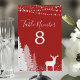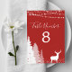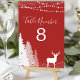 Transforme suas mesas de recepção em um país das maravilhas de inverno com esses números de mesa vermelhos impressionantes. Um majestoso veado adorna uma cena de floresta nevada, emoldurada por uma borda vermelha rústica e quente. Deixe que seus convidados encontrem suas mesas com facilidade e adicione um toque de charme festivo à sua celebração. Esses números de mesa personalizáveis são o toque final perfeito para o seu casamento de inverno.