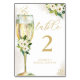 Numeração De Mesa Vidro de Champanhe Floral Branco e Dourado Persona