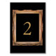 Um design de casamento com temas negros e dourados moldando elegantemente o texto com um quadro de ouro com estilo vintage. Elegante design da mesa de casamento com elementos modernos. A configuração moderna da tipografia lhe dá um estilo distinto. Também estão disponíveis itens de papelaria de casamento e outros formatos de convite de casamento. Personalize o número e adquira cada número mesa individualmente de acordo com quantos números de tabela você precisa.