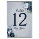 Um design elegante com rosas de aquarela deslumbrantes em tons de azul e branco clássicos sobre um fundo azul suave e poeirento. Você pode personalizar o estilo e a cor da fonte de qualquer maneira que desejar, clicando no link personalizar. Também estão disponíveis cartões de lugar, menus e guardanapos correspondentes.