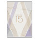 Placa de número de tabela de distribuição geométrica moderna contemporânea criada pelas cores BarefootBride™ são: Cogumelo Habitat, Violeta e Luz - com faixas de sotaque fina em ouro. Um belo desenho abstrato geométrico para o casamento moderno. Todo texto é personalizável.