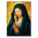 O fundo comum e escuro contrasta com a cabeça radiante da Virgem e com a morada branca que a cobre, e as mãos dela são cuidadosamente fechadas.