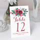 Trendy floral table number modelo com burgundy vermelha e colônias brancas com ramos sazonais de abeto verde de pinheiro, bagas vermelhas e folhagem em fundo branco simples e escrita à mão como um roteiro de tipografia. Personalize-o com as suas informações de convidado de casamento! Ao fazer o pedido, é necessário personalizá-lo e colocá-lo no carrinho de compro um a um.A cor de fundo e o texto são editáveis. Personalize-o com base nas suas necessidades após selecionar a opção "personalizar mais". - Se precisar de ajuda, por favor, entre em contato comigo. Ideal para um elegante na moda moderno inverno contemporâneo / Natal elegante casamento floral ou outras festas sazonais, recepções, coquetéis.