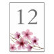 Os cartões florais chicos e elegantes apresentam um ramo de flores floradas de cereja doce em cor-de-rosa e água-ameixa, com seu número de tabela em cinzas médias. Design repete-se no lado oposto. Coordena-se com a nossa suíte de convite de casamento Cherry Blossoms.
