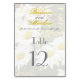 Uma foto de fundo de quase lá margaridas brancas com script amarelo e cinza faz disso um símbolo elegante e contemporâneo de números de tabela. Ele está pronto para personalizar com seus nomes, datas e números de tabela. Se você quiser ajuda com a personalização, entre em contato comigo em Leahshomelifestyles@gmail.com