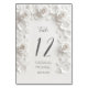 White sculptured 3D roses arched wedding table numbers card.