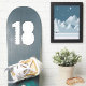 Número 18. Número 18 Número individual como autocolante. Cinzas prateadas e brancas. 8 x 8 polegadas