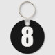 grande e negrito número 8 em branco no centro do botão preto de fundo chaveiro Com este chaveiro numerado, você pode ter seu número de sorte ou seu número favorito em qualquer lugar. Aproveite e divirta-se a misturar e combinar com os outros itens da nossa série numerada na nossa loja GrafiGoodies. Estes itens numerados podem ajudá-lo a classificar suas coisas facilmente. É também uma boa escolha para um presente pequeno.
