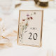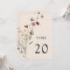 Este na moda e elegante cartão de mesa de casamento contém lindas flores de aquarela pintadas manualmente organizadas como um buquê adorável perfeito para primavera, verão ou casamentos outono. Encontre itens correspondentes na Coleção de Casamentos de Boho Wildflower.