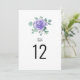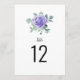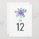 Estes elegantes cartões florais de números de mesa apresentam um design de aquarela moderno com flores roxas e folhagem de eucalipto. Eles são duplos. Altere o texto do número conforme necessário. Itens correspondentes disponíveis.