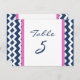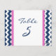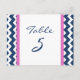 Cartões de números das mesas de casamento elegantes e modernas, cor-de-rosa-quente, azul-marinho-escuro e branco, com padrão retrô e chevron-zags divertido. Personalize estes cartões para criar cartões de número de tabela personalizados para cada mesa no seu casamento. Padrão disponível em uma grande variedade de produtos de casamento correspondentes.