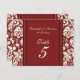 Cartões de números de mesas de casamento elegantes e clássicos, vermelhos e esbranquiçados, com cor damasco floral clássica. Personalize estes cartões para criar cartões de número de tabela personalizados para cada mesa no seu casamento. Adicione seus nomes e data de casamento. Padrão disponível em uma grande variedade de produtos de casamento correspondentes.