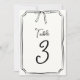 Este elegante modelo de números de tabela, estilo manuscrito, apresenta um design desenhado à mão clássico com uma ilustração de arco caprichosa no topo. É apresentado num esquema de cores preto-e-branco, perfeito para definir o tom para uma celebração única e chica.