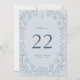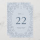 Número da Tabela de Casamento Azul Floral. Romântico e eterno, este cartão de mesa monograma azul empoeirado apresenta rosas florais de linha de vintage e peonias organizadas em uma moldura de chic que pode ser usada em qualquer época de casamento. Adicione um toque de elegância moderna e clássica ao seu dia especial com esta na moda e bela carta de mesa de casamento. Texto do marinho sobre um fundo de cinza azul.