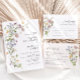 Números De Mesa Simples De Casamento De Bela-Vinha De Boca-Primavera. Buquê de mesa floral, estilo boêmio, com modelo de com flores silvestres brancas e verdes, elegantes e simples, pastel de boho, em cor d'água impressa à mão. Modelo editável para primavera, verão, outono e casamentos no inverno.